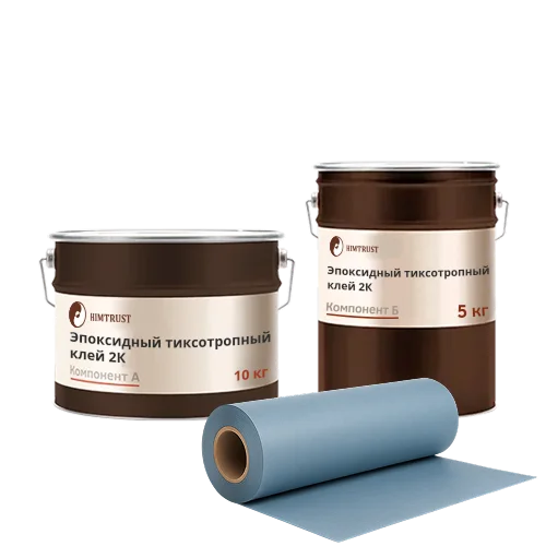 Химтраст Эпоксидный тиксотропный двухкомпонентный клей характеризуется высокой адгезией к основаниям и ленте, при отверждении обеспечивает паро- и водонепроницаемость.